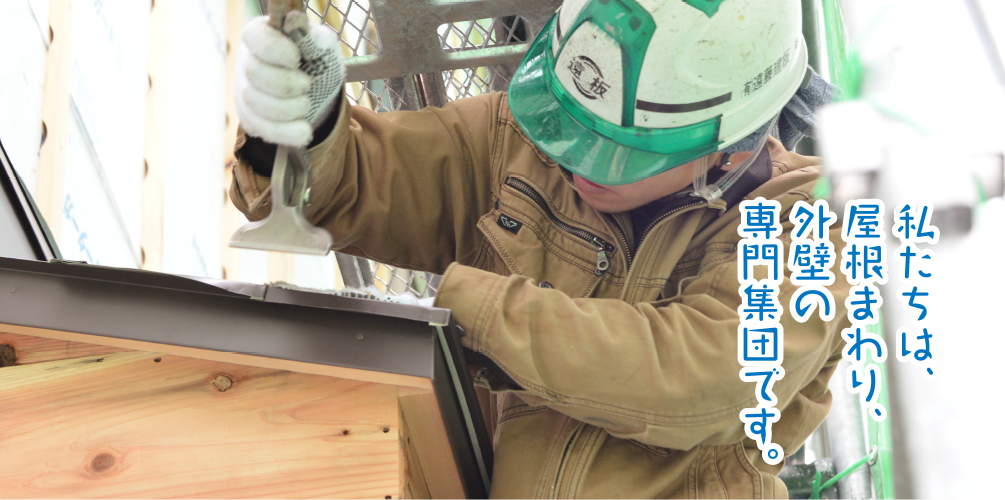 豊かな経験と技術・専門の資格を持つ職人たちが、お住まいを長く安心して使っていただくため 屋根・外壁・雨樋について、建材選びから各種工事、定期メンテナンスを行っています。