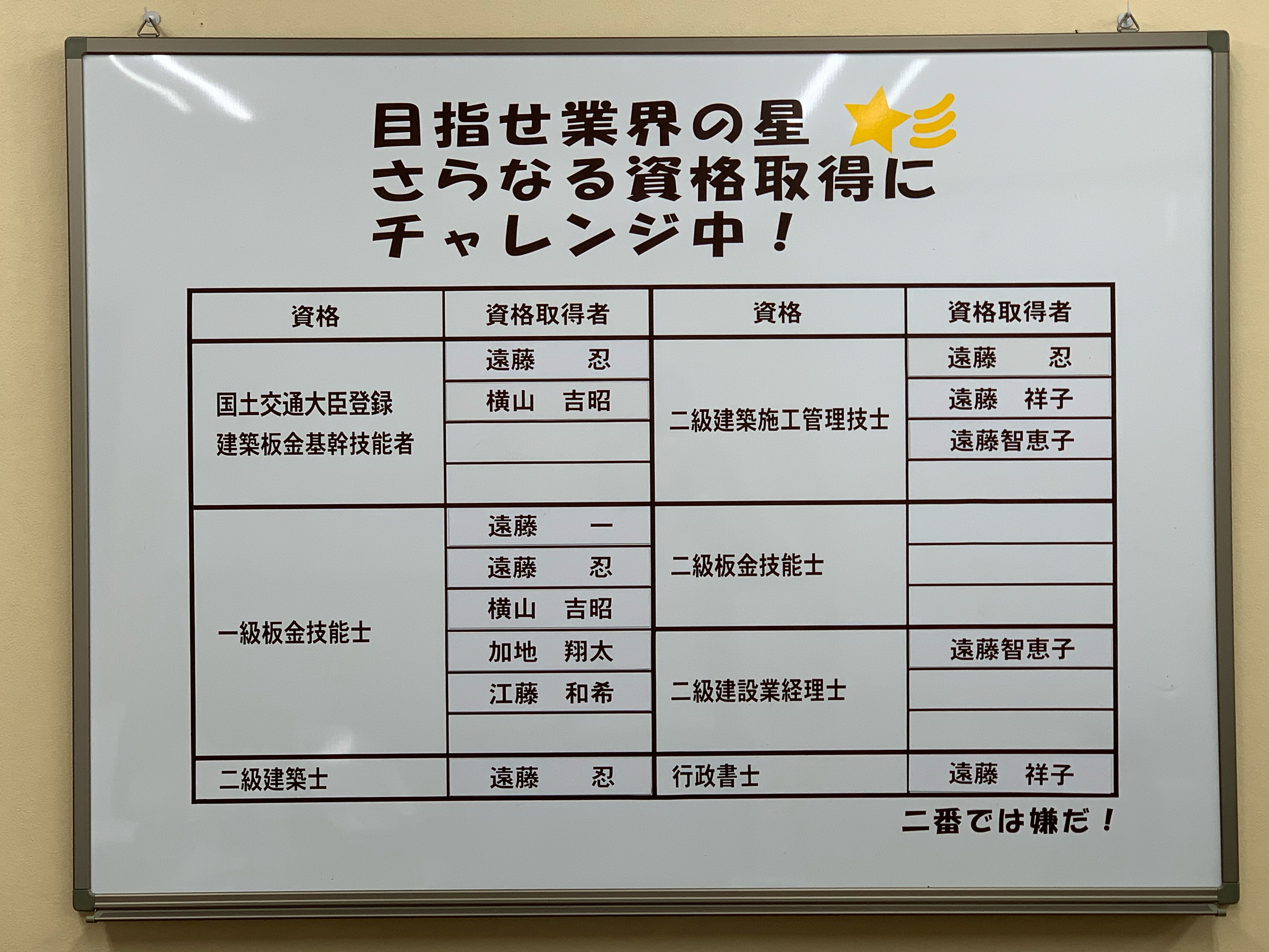| 平成 2年1月4日 | 父が二代目として有限会社遠藤建板を設立。 子供の頃は両親に遊んでもらった記憶がないほど、父と母は二人三脚で働き続け現在の登録客数は600件を超えるほどに。 |